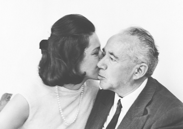 Giulio Natta with his daughter Franca in Sanremo while receiving the news of the Nobel Prize (1963)