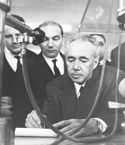 Giulio Natta with his collaborators Lido Porri and Italo Pasquon