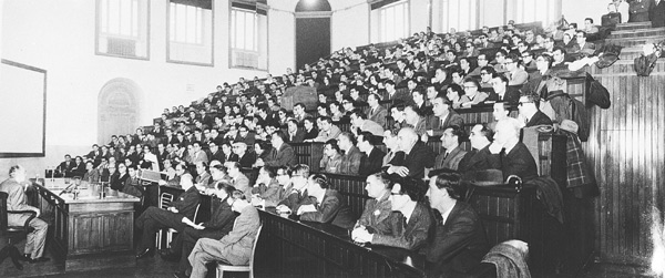 Giulio Natta festeggiato nell'aula del Politecnico dove ha insegnato per anni (1963)